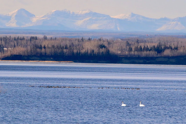 What a difference a day makes. I headed to the Red Deer River this morning and the conditions were perfect for fly fishing for walleye. It was overcast with some wind that made the water choppy and not too spooky! The walleye were quite cooperative as well. As you can see from the photo above, I was distracted by tundra swans, mallards and other duck species as I headed to the Red Deer River that were on Gleniffer Lake. Gleniffer Lake is of course a reservoir that provides water downstream of the Dickson Dam.